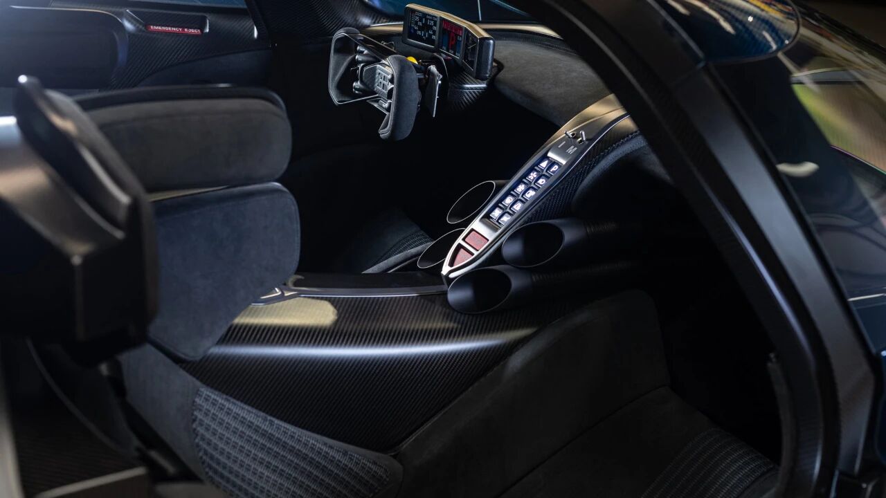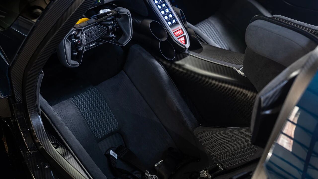 此次上拍的这台Bolide,更是限量40台中的稀缺精品。2023年8月敲定最终定制方案,车身以惊艳的透光绿松石碳纤维为主色调,澄澈质感在光线下游动,辨识度拉满。