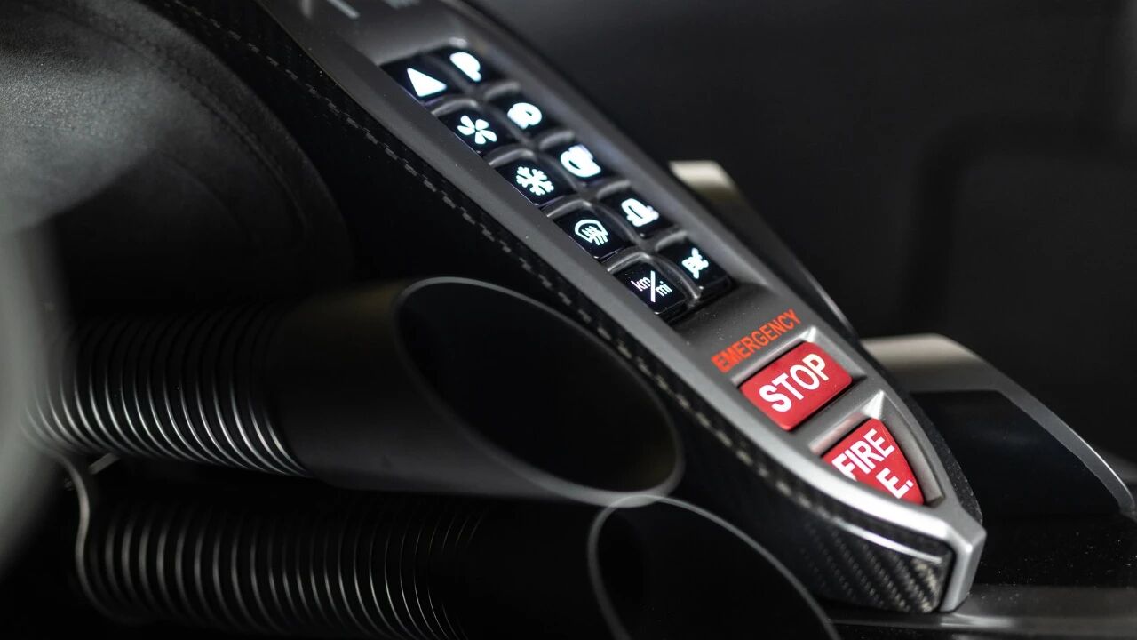 车身下部与侧裙空气动力学面板采用黑色碳纤维拼接,明暗碰撞尽显凌厉气场,定制化细节更是遍布全身,尽显专属格调。