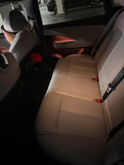 为了更直观地感受,我找了一位身高180cm的同事进行实测。当他调整好前排驾驶坐姿后,坐在后排,腿部空间能有3拳左右,头部空间也有2拳。即便坐满三个成年人,后排也不会显得拥挤。而且后排地板是纯平设计,这对于有老人或小孩的家庭来说,实用性极高,中间乘客不用再“委屈”地把脚架起来。