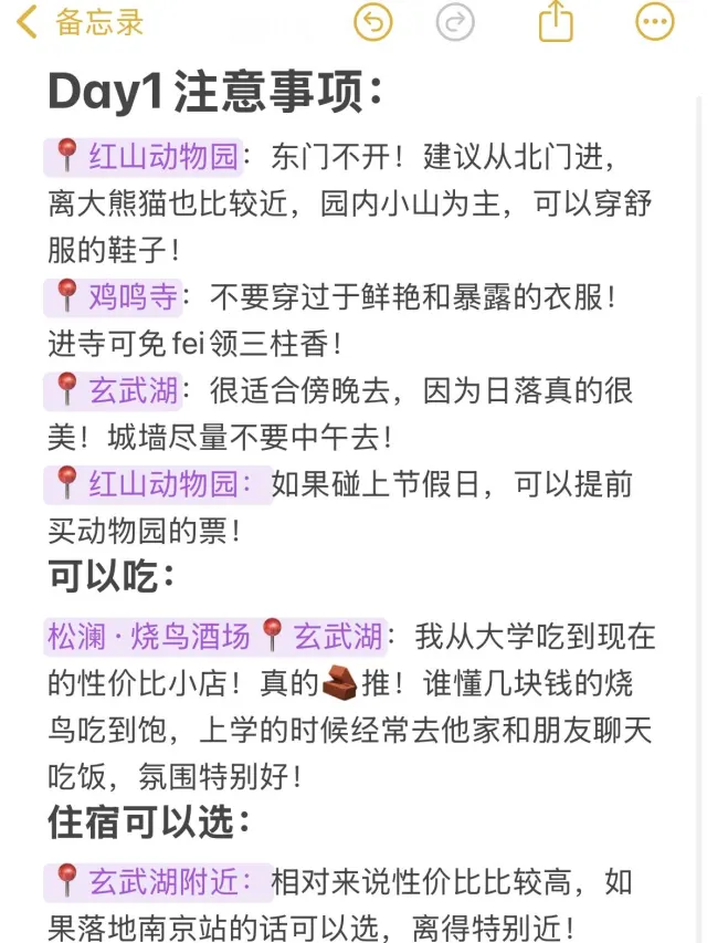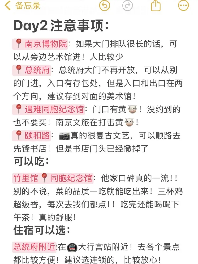 本P人出去旅游完全是无脑跟随我的J人男友,准备去📍南京玩四天,他提前把不绕路攻略做好,而且各个景点的注意事项也整了出来了!真是一点也不需要我担心~