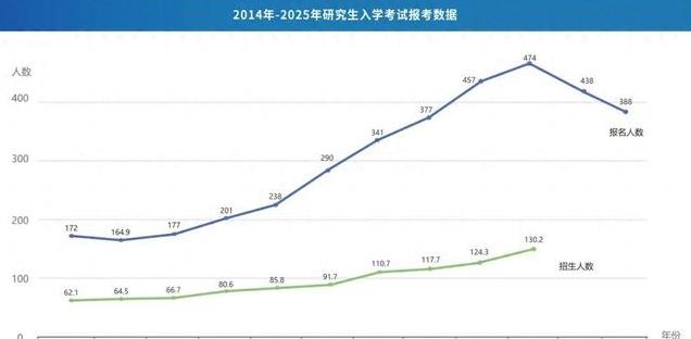 “考研热”曾是年轻人改变命运的重要途径,2023年,全国硕士研究生报名人数达到历史峰值——474万人,三年后,2025年的报名人数却滑落至388万,相较2023年减少了86万,这是一次令人深思的“降温潮”。