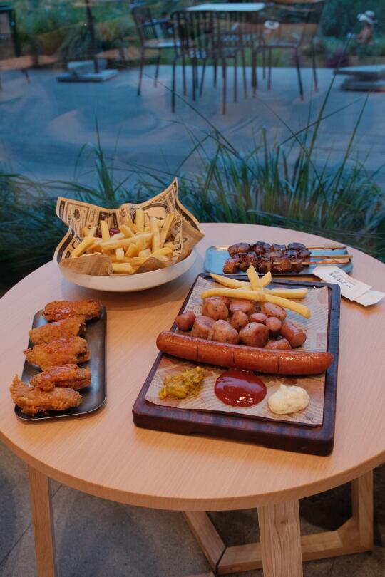 ❺荷塘旁的水边可以玩水枪🔫,玩累了还可以到身后的“温榆生活馆·Double U Coffee×三三两两俱”咖啡馆来杯咖啡,老板推荐的“局气美式”很不错哦,这里还有西式简餐可以填饱肚子