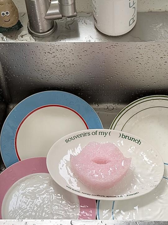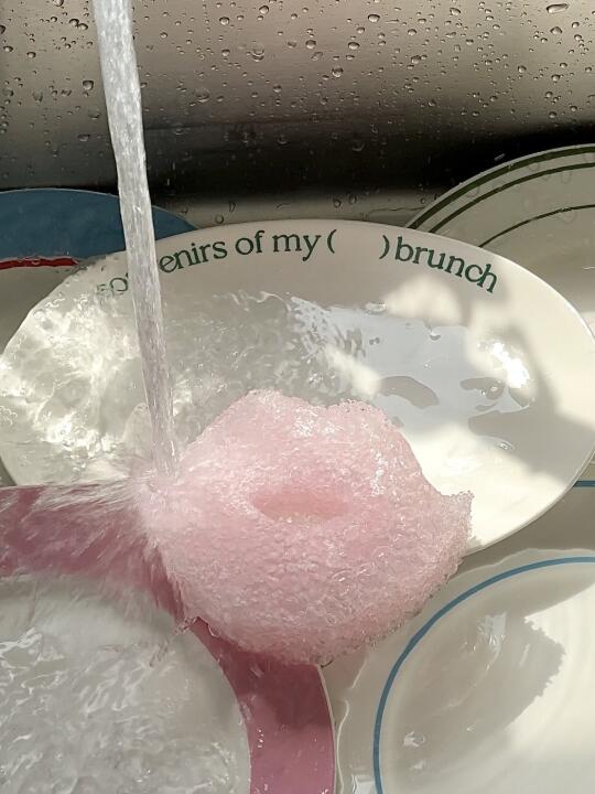 用过了好多海绵刷,有的太硬有的太软有的很爱掉渣。 这个就很好刷,刷盘子很爱起泡沫🫧软硬刚好刷东西干净,不容易掉渣,长得好看,真的是一个好海绵刷!