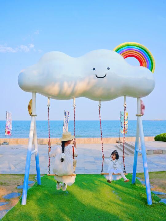 P15:青岛雕塑公园:海边云朵秋千超可爱