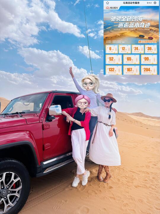 乌海各景点之间距离都比较远,我和朋友自驾游玩选择了轿车、SUV车型随心选,且价格实惠,app一键下单,取车送车上门服务,还支持异地还车,来乌海旅游租车可领取乌海文旅与悟空租车联合推出的自驾优惠券,领券下单更优惠!