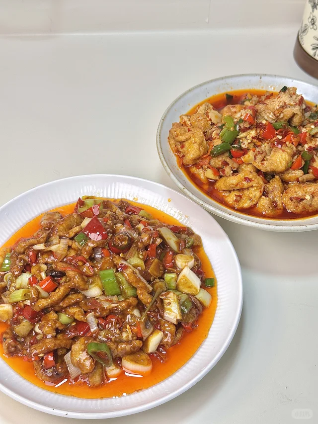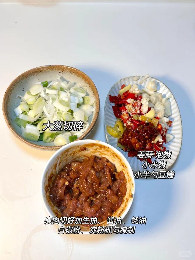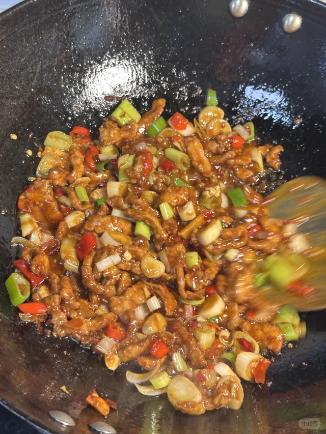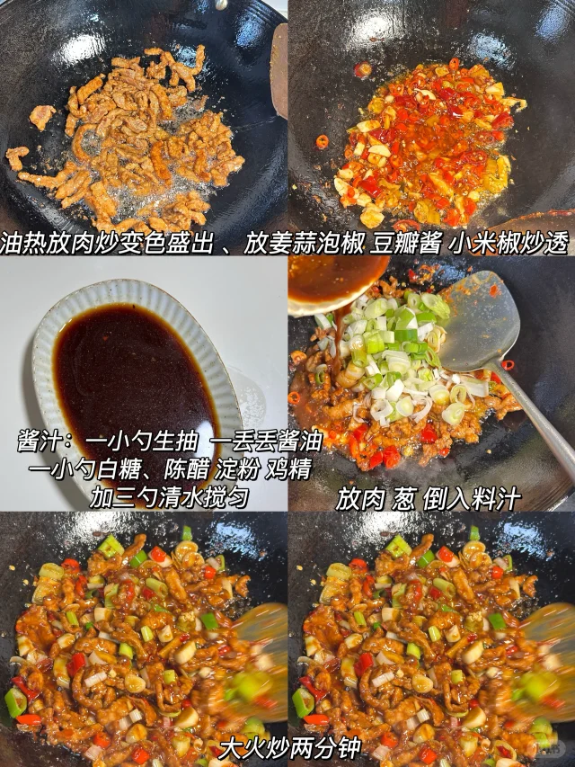 鱼香肉丝 川渝版我太喜欢了!香辣口 大葱炒熟后混着裹着酱汁的肉丝好适合拌米饭🍚呀~一定要试试[赞R]豆瓣酱要小火慢慢炒透就没有怪味哦[萌萌哒R]我的宅家美食日记 ✨食材:里脊肉 大葱 姜蒜 小米椒 泡椒 豆瓣酱 1️⃣:肉切丝加生抽 酱油、蚝油 白胡椒粉、淀粉抓匀腌制。料汁:一小勺生抽,一丢酱油、一小勺白糖、陈醋 淀粉、鸡精,三勺清水搅匀 2️⃣锅里倒油烧热放腌制好的肉丝炒变色盛出,放姜蒜 泡椒 小米椒 小半勺豆瓣酱小火慢慢炒透,倒入肉丝 大葱碎,酱汁大火炒两分钟炒香。 好好吃饭呀🖖🏻