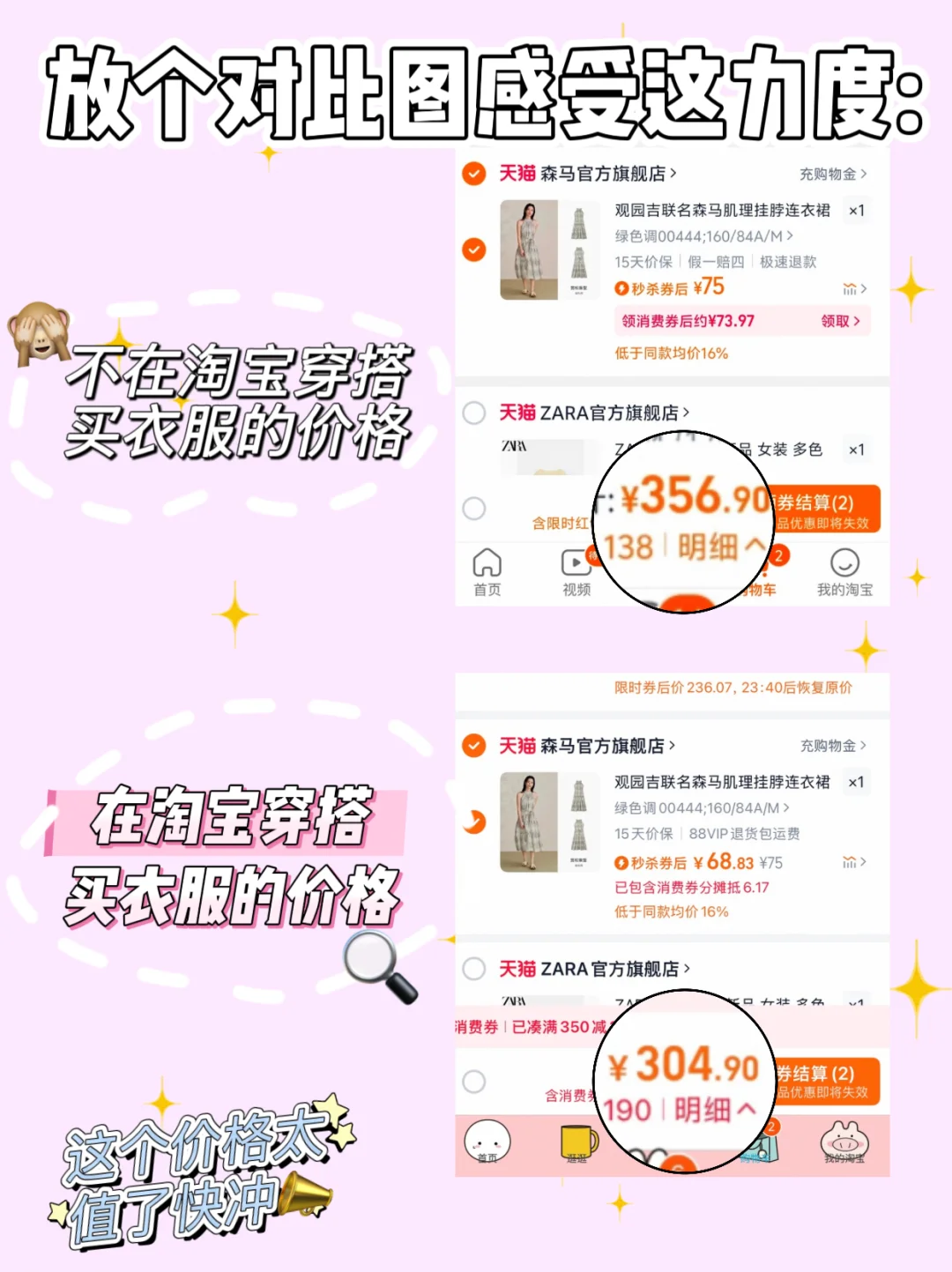 里面有很多大牌服饰Zara 森马 优衣库等等..还有各大热销网红店铺📝前几天我在森马旗舰店买了新款的连衣裙,收到是有质感的肌理面料~版型和细节都不错😝用了折上9折券再叠加了店铺优惠,又省了65块✌🏻
