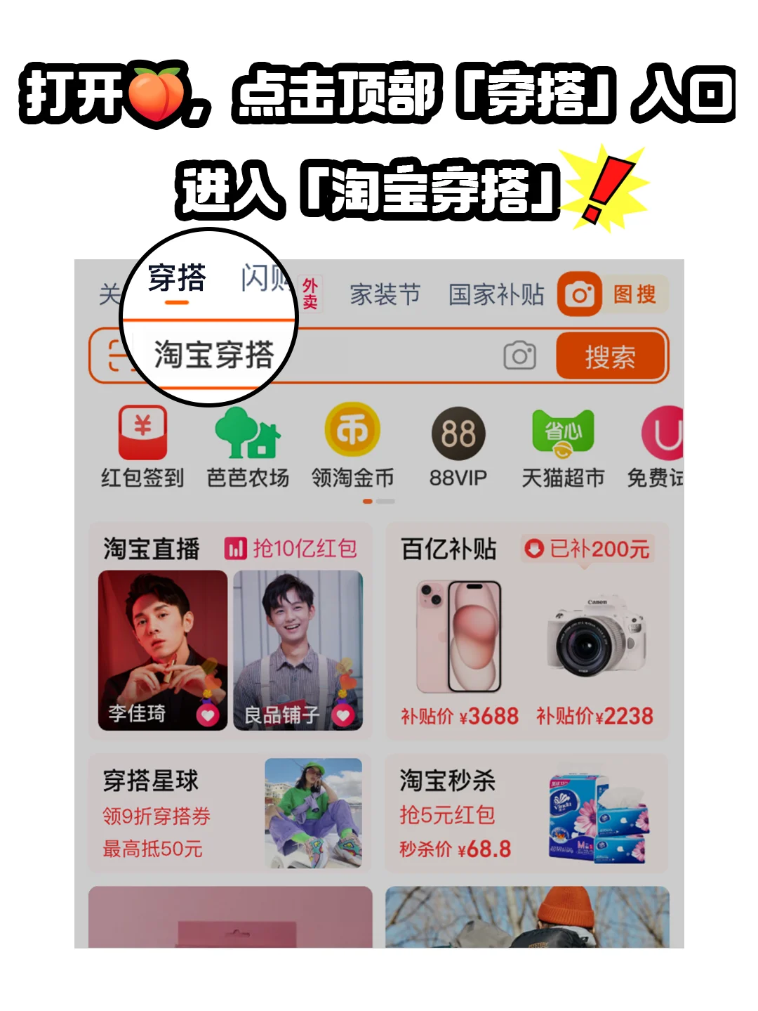 1⃣在🍑首页点击「穿搭」那个入口(就在淘宝闪购附近)