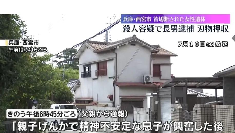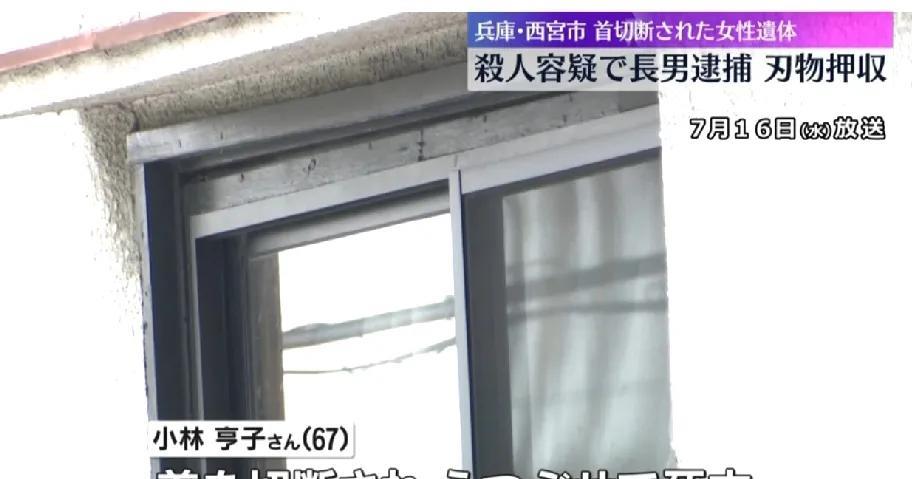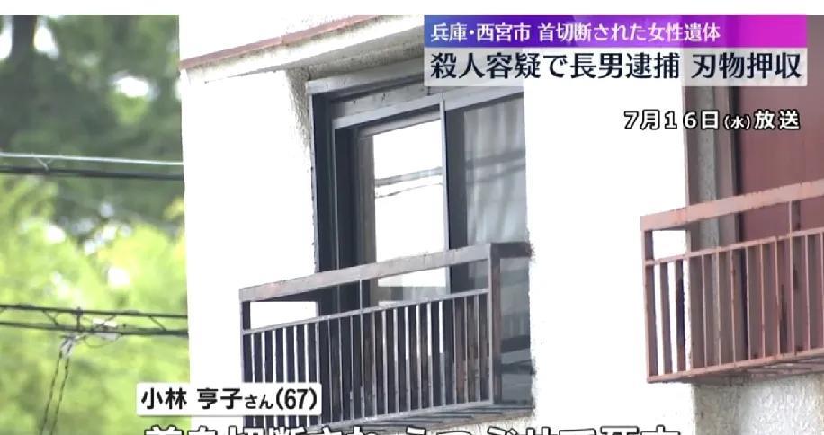7月15日下午,在兵库县西宫市的一所民宅内,发现了一具脖子被切断的 67 岁妇女的尸体。 警方以涉嫌谋杀嫌疑,迅速逮捕了与死者同住的其无业长子小林亮(36 岁)。 案发现场兵库县西宫市甲阳园,15日傍晚6点40分左右,一男子报警说“儿子精神不稳定,与其母亲吵架后很亢奋,将自己锁在房间里,他母亲也被囚禁在屋内。 当警方赶到现场时,发现二楼屋内的小林亨子(67 岁)面朝下趴在床上,脖子被切断,确认死亡。 长子小林亮(36 岁)穿着沾有血迹的衣服站在房间里,承认杀死了其母亲。 作案时间在下午1点到7点之间。 小林亮承认了警方指控,说:“我杀了我母亲,”警方正在调查作案细节。