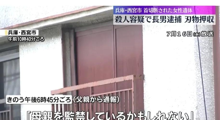 7月15日下午,在兵库县西宫市的一所民宅内,发现了一具脖子被切断的67岁妇女