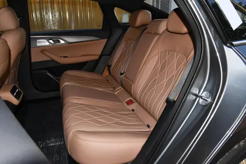 进入车内,银河A7的空间表现是其核心亮点之一。2845毫米的轴距带来了相当可观的纵向空间。我们以一位身高182厘米的体验者为例,将前排主驾驶座椅调整至合适的驾驶姿态后,其头部空间仍能保留约一拳的余量,视野开阔,没有压抑感。保持前排座椅位置不变,同一位体验者进入后排,其腿部空间表现得十分宽裕,大约有超过两拳的剩余空间,可以轻松调整坐姿。后排头部空间也经过了优化设计,留有约四指的余量,整体乘坐感受较为舒适。此外,0.87平方米的可开启全景天窗为车内带来了出色的采光效果,配合电动遮阳帘,用户可以根据天气和个人喜好自由调节。在座椅配置上,2025款 70km 豪享版采用了仿皮材质包裹,前排座椅的功能性值得称道,标配了电动调节、加热、通风以及按摩功能,尤其是官方宣称的14点SPA级指压按摩,包含腰、背、臀、腿一体式设计,并提供8种按摩模式,对于缓解长途驾驶的疲劳有不小的帮助。主驾驶位还额外提供了座椅记忆功能。后排座椅支持40:60比例放倒,这使得原本就达到535升的行李舱容积可以进一步扩展至988升,无论是日常通勤还是长途旅行,其装载能力都表现得相当不错。整车1599公斤的整备质量与1994公斤的满载质量之间,也提供了接近400公斤的承载能力,能够满足一般家庭的出行需求。