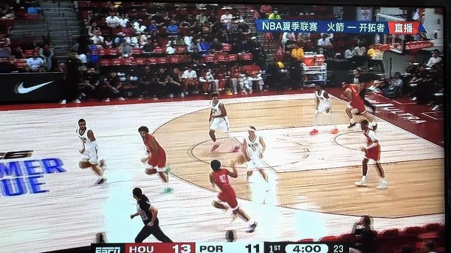 直播NBA夏季联赛开拓者对阵火箭,第1节比赛开始,杨瀚森第1个球失之交臂,火箭两