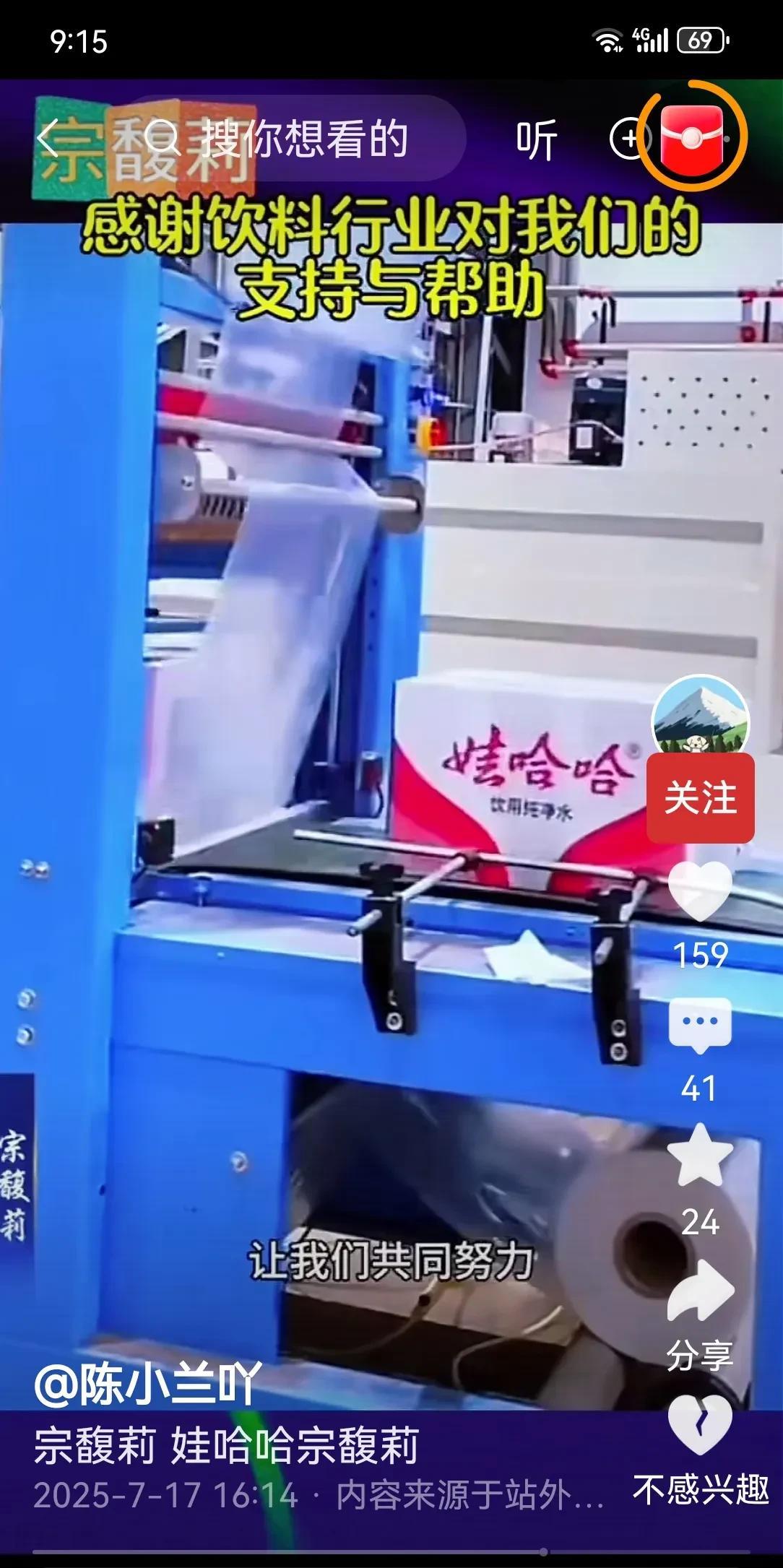 7月16号宗馥莉在抖音上公开露面! 她在向中国饮料工业协会成立30周年表示祝贺!并致词:祝饮料工业协会蓬勃发展,越办越好!感谢广大消费者大力支持! 宗馥莉很少和公众见面,难得见她泰然自若的样子,所有支持宗氏企业的人们心里都会感到无比欣慰!不管宗氏家族如何内斗,但对于大公主来说,最起码没有被舆论旋涡所淹没,值得庆幸!