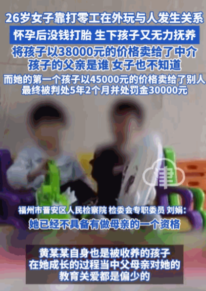更离谱的是,她两次生下孩子就转手卖掉,第一个卖了4.5万,第二个3.8万,拿钱就去买包刷礼物,完全不像个母亲。