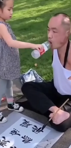 看哭了!山东聊城,丈夫意外失去双臂,妻子无情离婚,抛弃丈夫和女儿,丈夫天天拼命用脚,用嘴练字,功夫不负有心人,终于能用嘴,脚写字,天天几岁的女儿照顾他,饿了,女儿喂,渴了,女儿喂水,身上有伤,女儿给擦药,天天起早贪黑女儿帮父亲出摊,收摊卖字挣钱。网友:女儿就是父亲的双手,太不容易了。 在聊城的菜市场门口,每天清晨都会有个特别的摊位支起来。 塑料布被几块石头压着边角,风一吹还是会轻轻晃动,上面歪歪扭扭写着“卖字五元一张”的招牌。 摊位后坐着的男人没有双臂,旁边站个小姑娘,正是他8岁的女儿。 这个男人叫郭先生,曾经也是个能扛能挑的健康人,直到那场改变命运的意外。 几年前的一个普通下午,郭先生家的煤气突然发生爆炸。 等他从医院醒来时,双臂已经没了知觉,前后十几次手术没能留住他的手臂,最终连基本的劳动能力也丧失了。 这场意外像块巨石,砸碎了原本平静的生活,更让他心寒的是,妻子在他最需要依靠的时候选择了离开,留下他和年幼的女儿相依为命。 家里的顶梁柱塌了,又没了妻子的照料,父女俩的日子一下子跌到了谷底。 失去双臂后,郭先生没想着靠别人救济。 他总说:“自己不努力,没人替自己努力生活。” 偶然间,他想到了写书法谋生,可对于没有双臂的人来说,握笔都是奢望,更别说写字了。一开始,他试着用嘴叼着毛笔,没写几个字,嘴就酸得直抽抽,口水顺着笔杆往下流,把纸都浸湿了。 用脚写字更难,脚趾不听使唤,笔在纸上东倒西歪,练不了一会儿就浑身冒汗。 他就在报纸上反复练习,一张报纸写满了就换一张,日复一日,年复一年。 数年的时间里,光练坏的毛笔就有80多根。 笔杆磨破了嘴角,脚趾磨出了厚茧,他从没喊过苦。 他心里憋着一股劲:不能去乞讨,要靠自己的手艺挣钱养女儿。 慢慢地,他用嘴和脚写出的字越来越工整,终于能拿出手了,便决定带着女儿去街头摆摊。 他们的摊位选在了菜市场门口,这里人多,或许能多些生意。 塑料布铺在地上,上面压着几块石头防风吹,一块木板歪歪扭扭写着“卖字五元一张”。 8岁的女儿成了他的“小帮手”,个头还没凳子高,每次铺纸都得踩着板凳踮着脚。 有人在摊位前停下看热闹,女儿就赶紧踮起脚递过毛笔,笔杆上还沾着早上喂爸爸吃米汤时留下的印子。 摆摊的日子苦乐参半,最怕遇到坏天气。 下雨天最愁人,墨迹还没干透就被雨水冲花,字卖不出去,一天的功夫就白费了。 有一回刮大风,塑料布上的纸全被吹跑了,女儿追着跑过两条街,膝盖摔破了也没撒手,把一张张纸捡回来时,小脸上全是泥。 可就算这样,收摊时女儿还是咯咯笑着,蹭着爸爸的胳膊说:“明天买肉包吃呀。” 其实钱罐里只有几枚叮当响的硬币,连买两个馒头都勉强。 女儿不光在摊位上帮忙,家里的事也懂事地分担。 爸爸饿了,她就一勺一勺喂饭;渴了,就端着水杯小心地递到嘴边,身上练书法磨出的伤口,都是女儿晚上回家后轻轻擦药。 郭先生看在眼里,疼在心里,却只能用下巴蹭蹭女儿的头发,这是他能给的最温暖的安慰。 后来,郭先生开通了社交账号,随手拍些练字和女儿的日常发上去。 一开始没什么人关注,他也没在意,只是坚持记录。 没想到,他的事迹慢慢传开了,越来越多的网友看到了这对父女的故事,账号粉丝一下子多了起来。 有人在评论区问地址,想来现场买字,有人直接留言要买下他写的作品,还有人说,从他身上看到了生活的勇气。 爆火后,郭先生依旧每天带着女儿在菜市场门口摆摊,五元一张的字,一笔一划都浸着汗水。他从没想过靠同情赚钱,只是踏踏实实地写好每一个字。 女儿还是那个踩着板凳的小帮手,递笔、捡纸,忙前忙后,父女俩的日子过得清贫,却从没丢了骨气。 有人说他们可怜,可郭先生不这么觉得。 他靠着自己的手艺挣钱,女儿在身边陪着,这样的日子就有奔头。 网友们说,女儿是父亲的双手,可在这对父女身上,更让人动容的是那份不向命运低头的韧劲,不乞讨,自食其力,这对父女用最朴素的方式,书写着生活的尊严。 对此,你有什么看法?