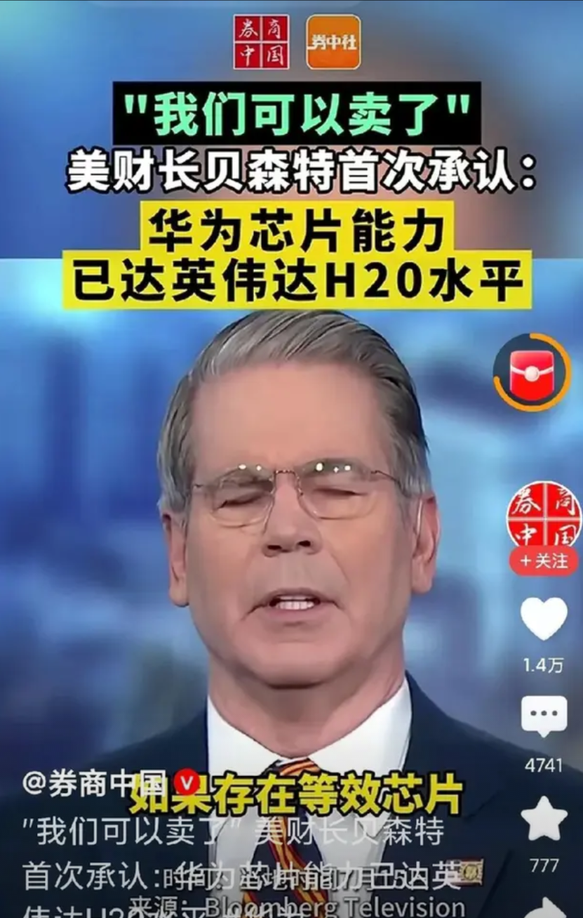 太狡猾了!原来,华为的芯片达到了H20的水平,所以美国才卖H20给我们的,若不这样,H20也不会卖给我们,所以,他们愿意卖,咱能不能争口气不买。 7月15号那天,美国管出口的部门突然发了个通知,说英伟达那个专门给中国做的、被阉割过的H20人工智能芯片,可以卖了!