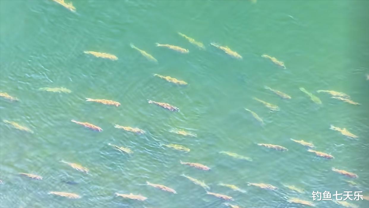 这是发生在湖南沅江上的捕猎场面,可以看出水里的鱤鱼、鲢鳙以及鳊鱼,个个都十分肥硕,尤其是鱤鱼和鲢鳙,膘肥体健,排成阵列在江面上游弋,从空中望下去,画面非常震撼。