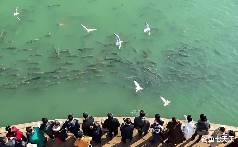 宜宾三江口的画面也很震撼:成群的鱼游过,把江面染成黑压压一片,这些鱼见了人根本不害怕,反而围过来要吃的,这些野生鱼类,硬生生被宠成了宠物鱼。