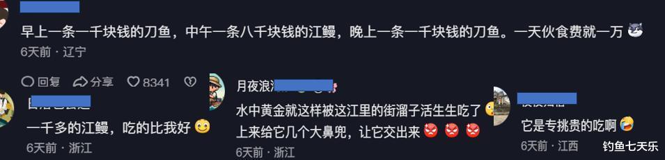 一位辽宁网友调侃称:“早上一条一千块的江刀,中午一条八千块的江鳗,晚上再来一条江刀,一天伙食过万。”