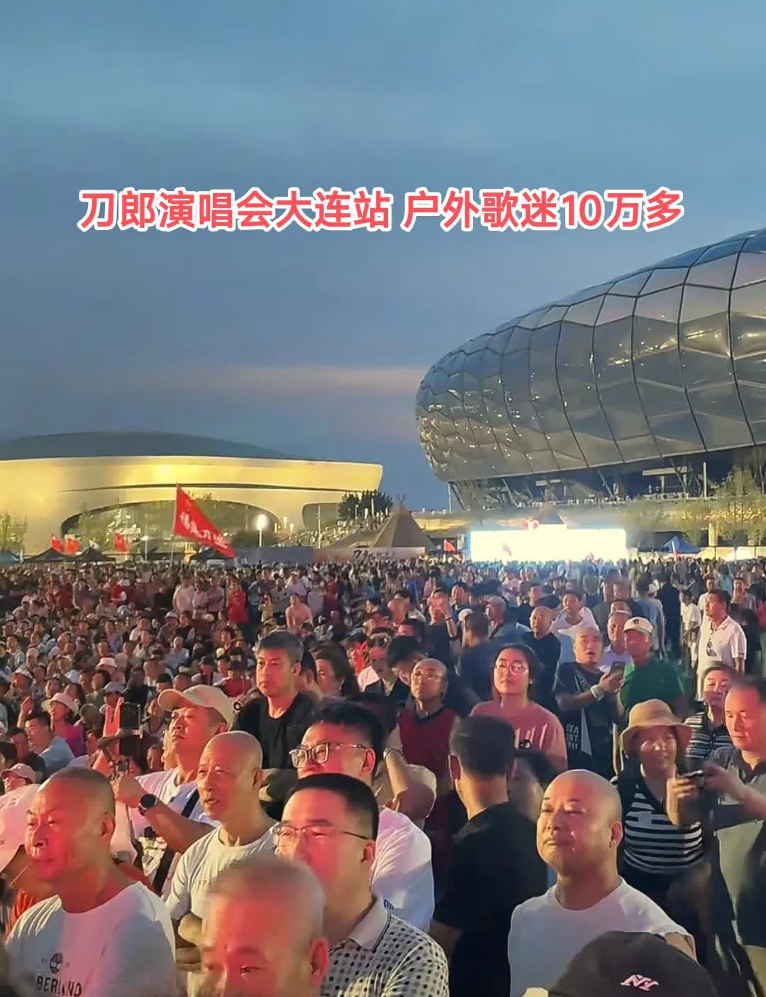 这样看来大连人不仅喜欢看足球比赛,也喜欢看演唱会,前提是歌手要有足够多的成名曲。 今天刀郎大连站的演唱会真的是人山人海,以至于手机信号都卡了,仔细观察体育馆外面的足球场站满了人,粗略估算来自全国各省的歌迷大概有10万多人聚集在外面。走在人群中发现很多来自福建、浙江、北京、四川、江西、广西、江苏的歌迷都在大连,说到最后希望未来大连的演唱会市场能越来越火爆。