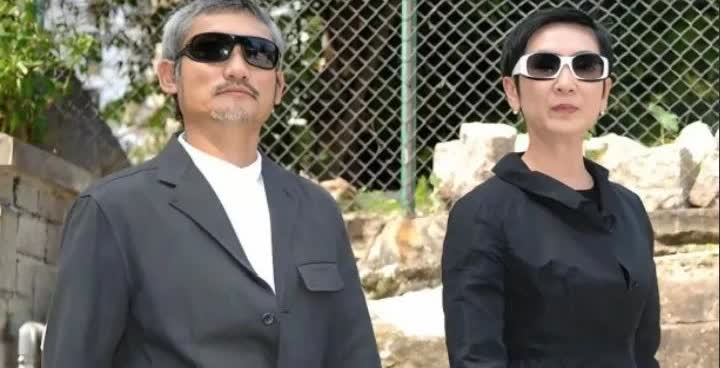 2007年,钟楚红的丈夫朱家鼎追思会上徐克夫妇出席时的一幕,徐克夫妇俩一身黑色上衣墨镜遮面但难掩悲伤之情
