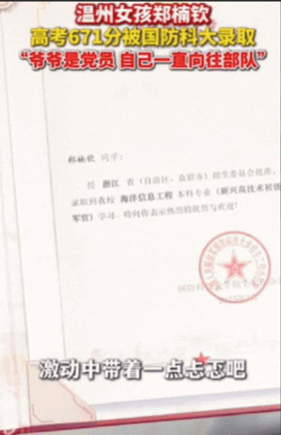 视频发到网上,有网友说:“671分能选轻松的路,偏挑了最需要硬骨头的国防科大,这不是傻,是心里装着家国。”