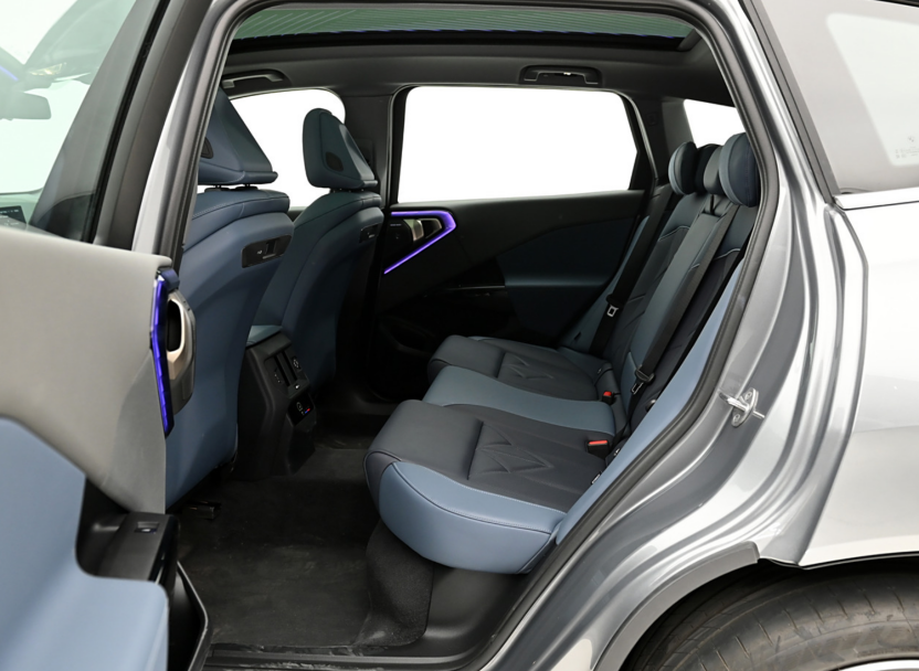 这里比较出彩的,就是出现在车门、中控台和扶手台上的氛围灯带,动态变化时有流光溢彩的效果,再加上水晶质感的旋钮和拨杆,整体呈现出的科技与豪华感,还是和一系列中国品牌的高端新能源SUV主打的简约科技风,形成了明显的差异化。