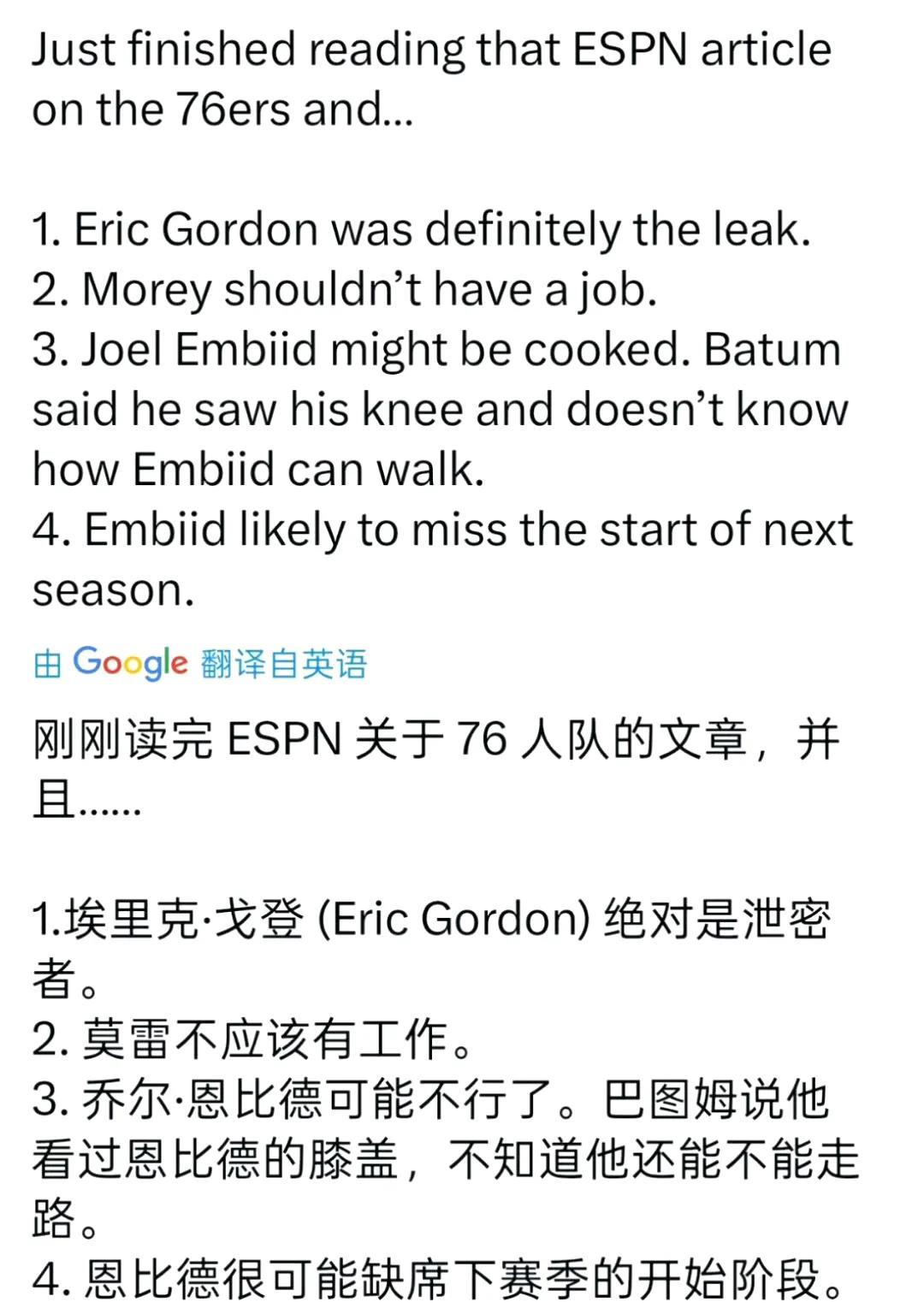 最新交易签约即时更新汇总: 果然是豪门,别的球队只能吃他们不要的剩饭剩菜。 如果勇士愿意拿出未来无保护选秀权,科比怀特和多森姆一起加入勇士,也并非不可能。 完成库明加的签换之后,勇士将尽力完成梅尔顿和霍福德的加盟。 现在综合各方面的消息来看,不是保罗在犹豫,而是弗兰克在反复权衡,他在跟保罗和布罗格登的沟通中,反复强调一点,快船的轮换已经很充裕,后续加入快船的球员,在上场时间和战术地位上,都得做好边缘化的思想准备。 这个消息的消息源不是来自于ESPN,多个信息源透露,76人一直隐瞒恩比德的膝盖伤情,并尝试寻求过愿意赌恩比德能够康复的球队交易,但因为内部人员泄密,导致计划流产。 而泄密人传言是埃里克—戈登! 旺财可能会被解聘! 苍天饶过谁??