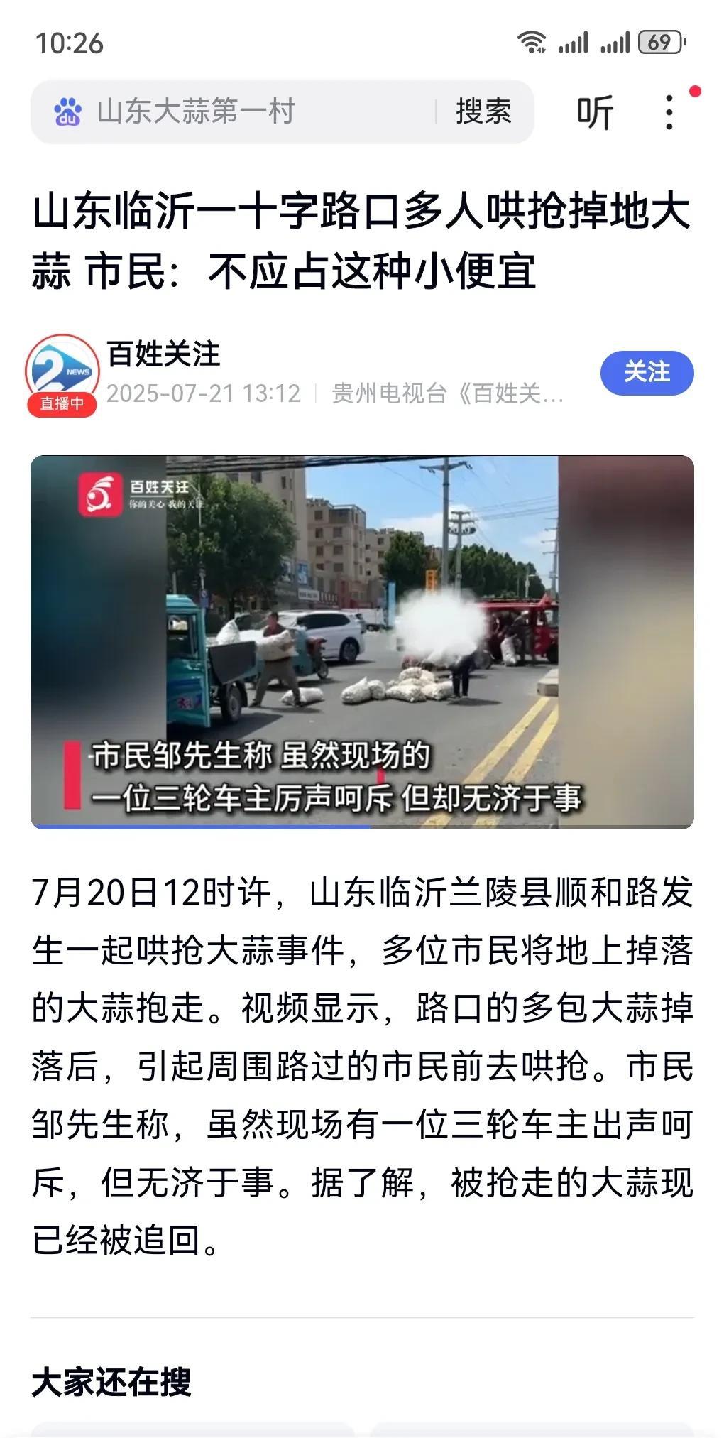 真的是太不应该了,怎么能做出这样的事呢? 7月20日,山东临沂,发生一起哄抢大蒜
