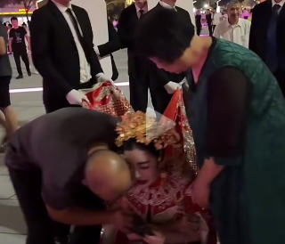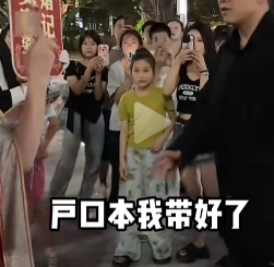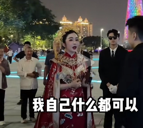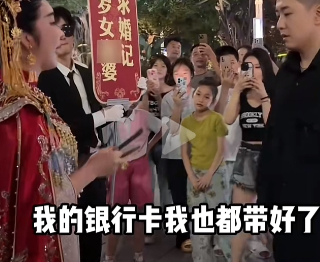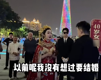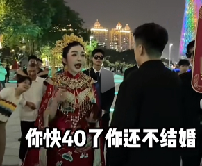 看道化服像剧本演绎啊 旁边还有人举牌40岁富婆求婚记