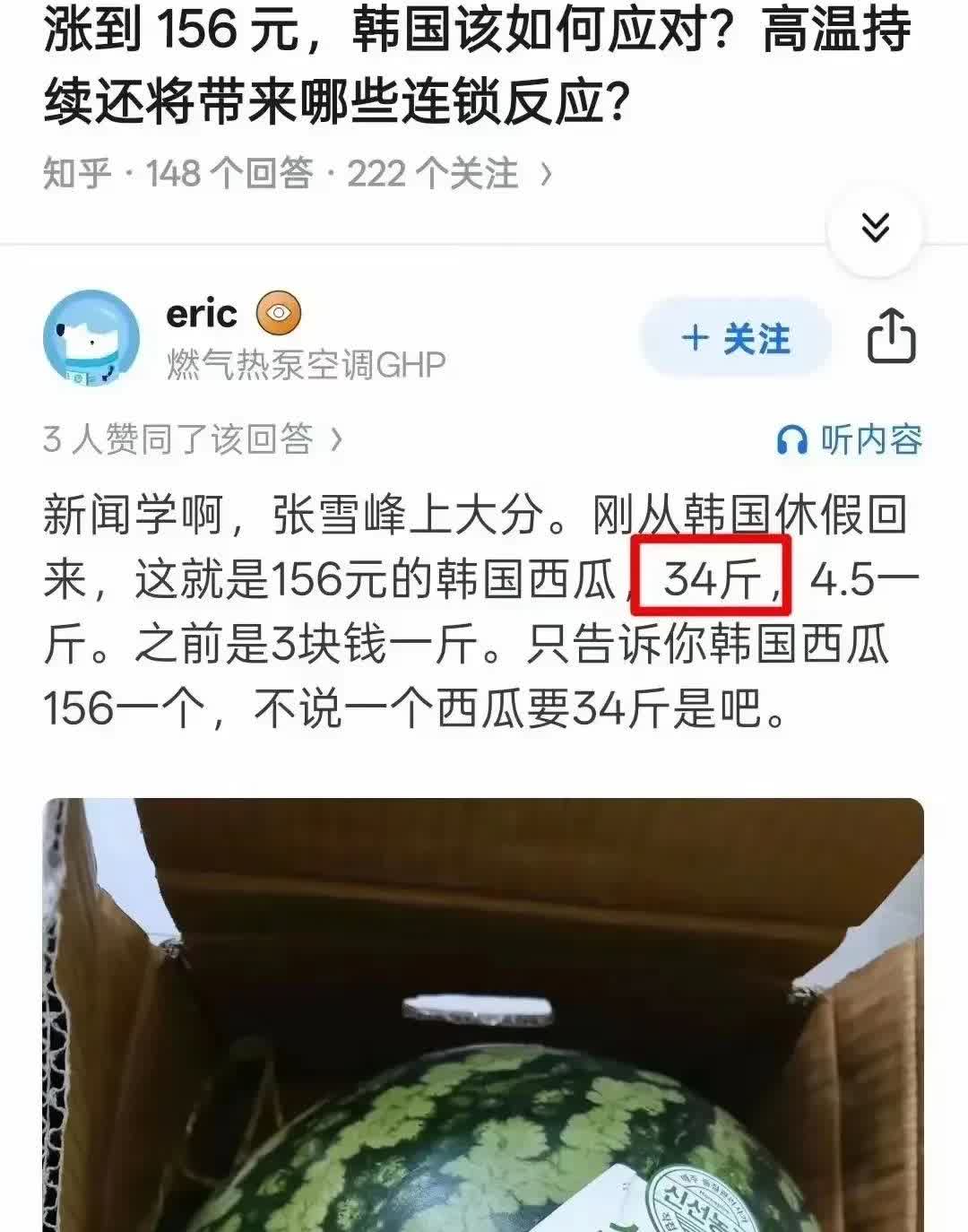 这个人给韩国洗地已经到了语无伦次的地步了吗? 就为了证明韩国的西瓜没有那么贵,