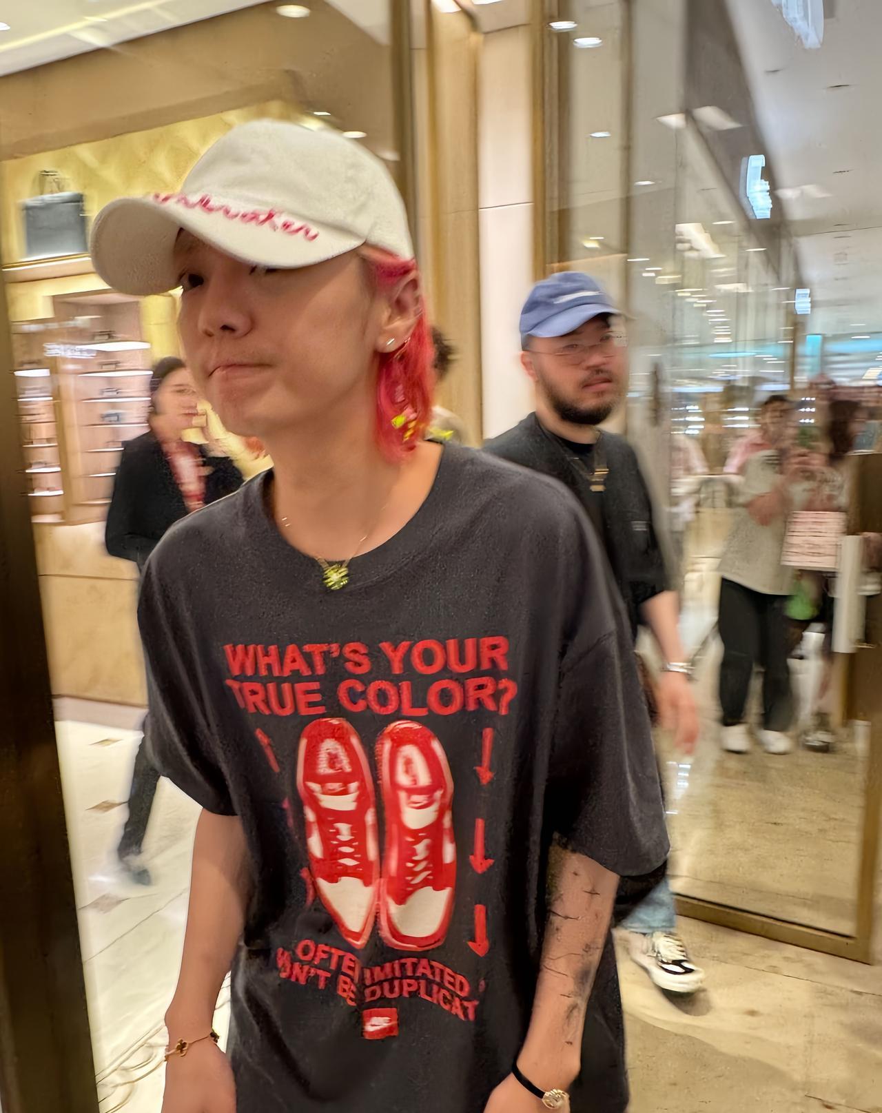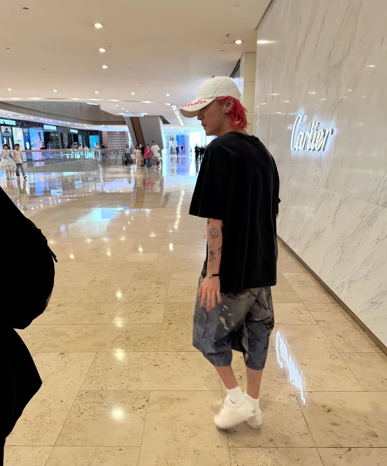 7月22日,有位网友在南京德基广场偶遇鹿晗,他染着红色头发,越来越有GD那味儿了