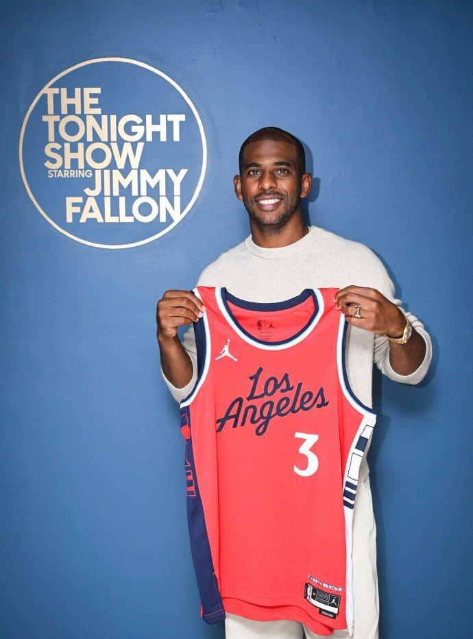 保罗参加吉米晚间脱口秀节目,获赠他最新的快船3号球衣,这个号码就非常熟悉了。 根