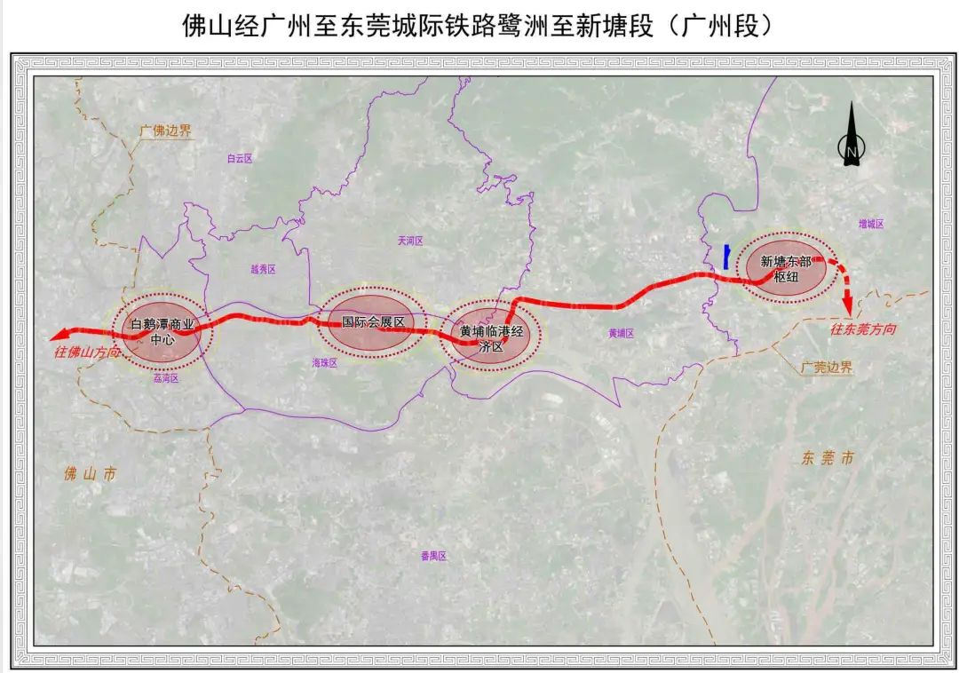 其中,广州10座车站依次为:芳村、市二宫、艺洲路、磨碟沙、琶洲、鱼珠、黄埔、埔南路、陈家林路、新塘;佛山段共设7站,依次为:鹭洲、东平、文华公园、普君北路(预留)、叠滘、奇槎、三眼桥。