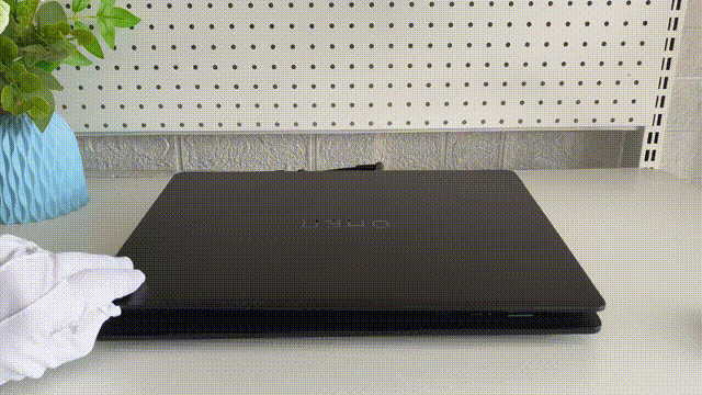 这款产品将转轴前移,阻尼适中,单手就能掀开屏幕,最大开合角度约130度。