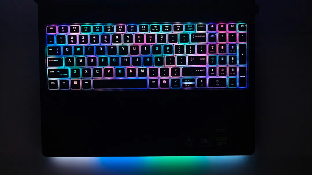 掀开屏幕,首先映入眼帘的就是继承自暗影精灵10 SLIM 14,来自HyperX的无边框高透RGB键盘(单键可调RGB背光,可以在OGH里随意DIY)。