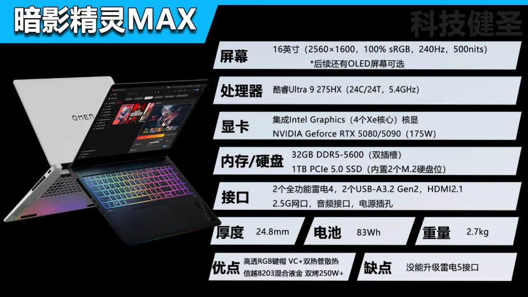 作为游戏本领域最著名的品牌之一,OMEN暗影精灵在过去总有一些让玩家们【意难平】的遗憾,比如经典外观连用多代,屏幕并非16:10,最高仅可选RTX4080(Laptop版,下同),而且独显功耗释放并非满血标准,很难满足真发烧级游戏玩家的苛刻要求。随着全新一代OMEN 暗影精灵 MAX游戏笔记本的上市,我们终于迎来了更趋完美的暗影精灵。