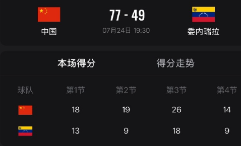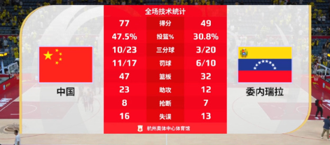 本场比赛中国队4人得分上双,胡金秋14分6篮板,程帅澎14分3助攻,余嘉豪13分8篮板以及赵睿11分3篮板3助攻。