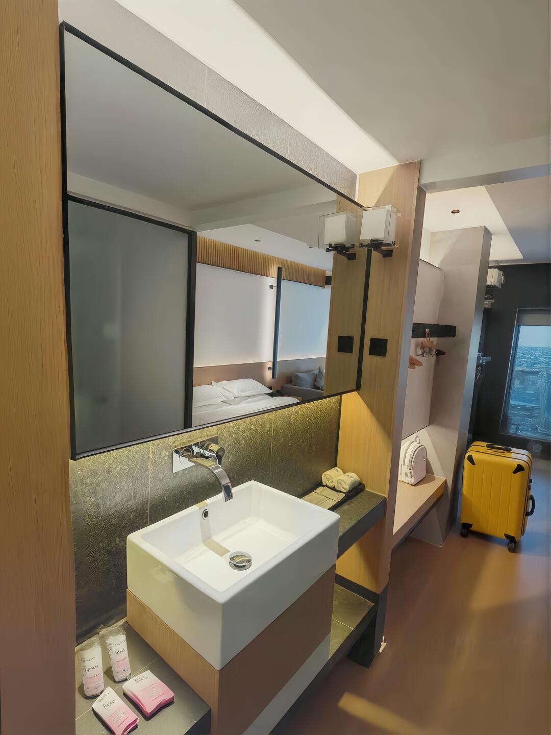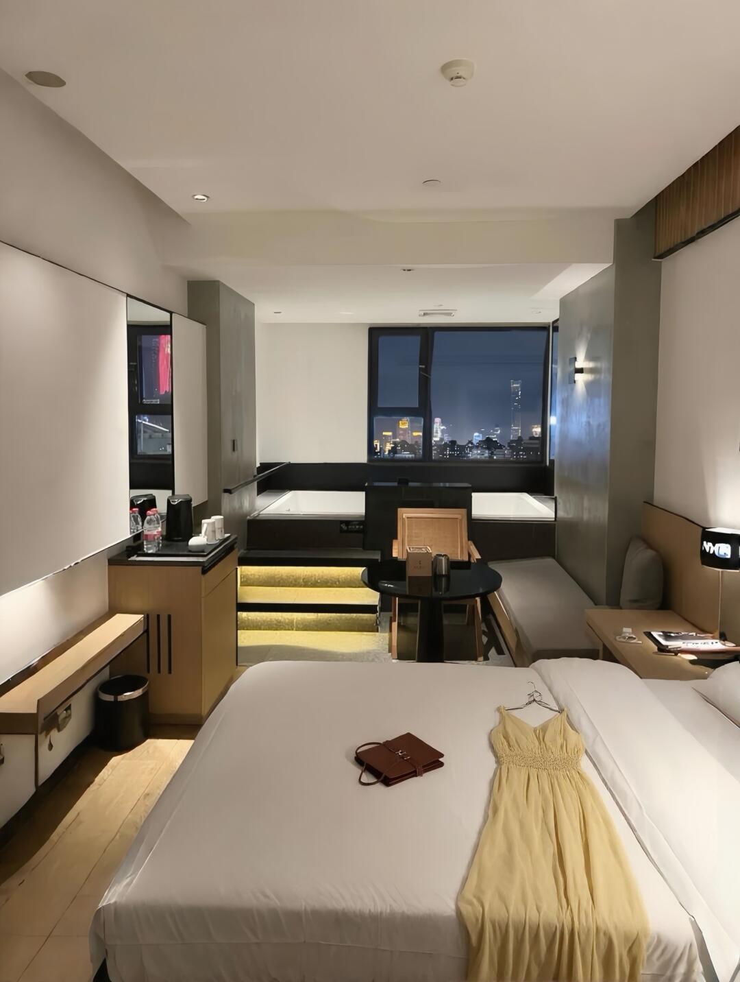 双人浴缸很大,有专人消毒,而且提供一次性浴缸套