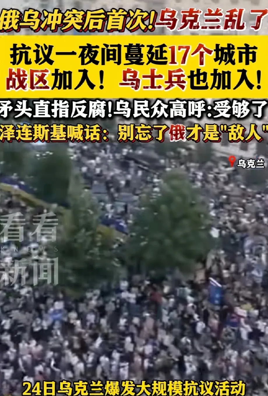 乌克兰出现大范围的抗议活动,目标是泽连斯基以及政府的腐败问题。