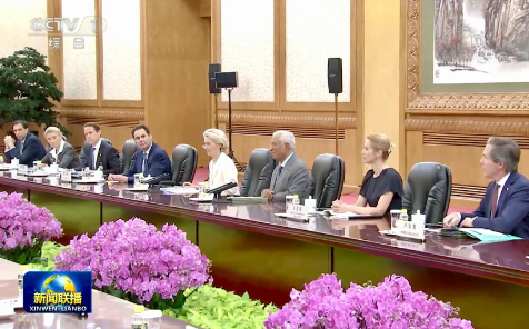 看今天新闻联播,欧洲理事会主席科斯塔和欧盟委员会主席冯德莱恩一行,坐在其中,笑容灿烂……