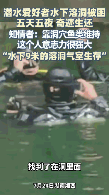 湖南湘西的山水,总藏着些奇奇怪怪的洞。7月24日,潜水爱好者阿远(化名)就撞见了一个——水下9米深的溶洞,把他困成了“五日洞主”,最后被救援人员“强行退房”。