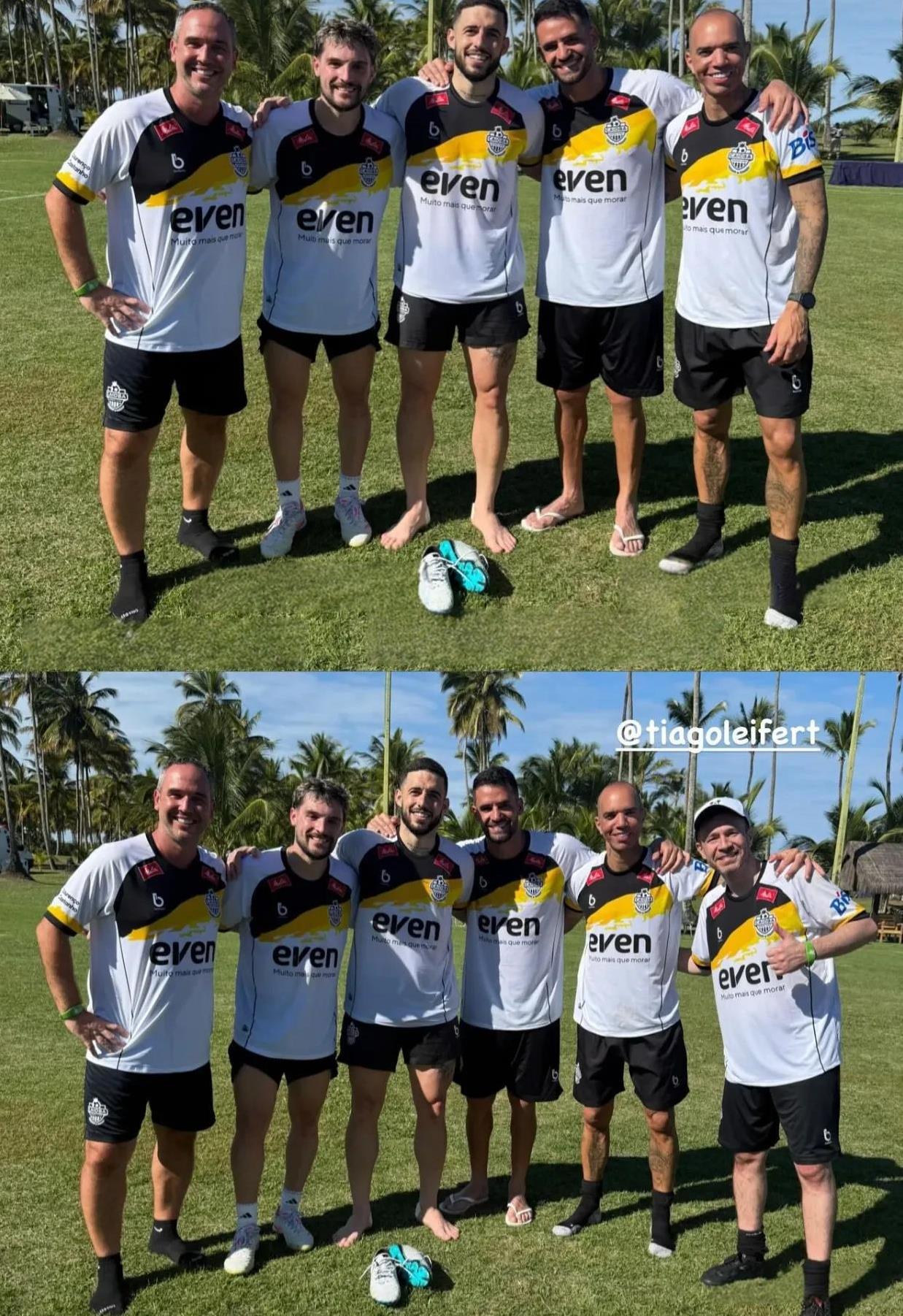 奥古斯托与塔尔德利一起踢野球,金元时代的京鲁大战这么火爆,他们两人在场外依然是好朋友。 奥古斯托在社媒发布踢业余足球的照片,照片中有塔尔德利、奥利维拉等人。 奥古斯托曾是巴西国家队的主力后腰,塔尔德利曾是巴西国家队的主力中锋,两人都在金元时代来中超踢球,分别效力于国安和鲁能。 奥古斯托与塔尔德利已经回到巴西多年,两人依然经常聚会,友谊深厚。 #山东泰山# #山东泰山#