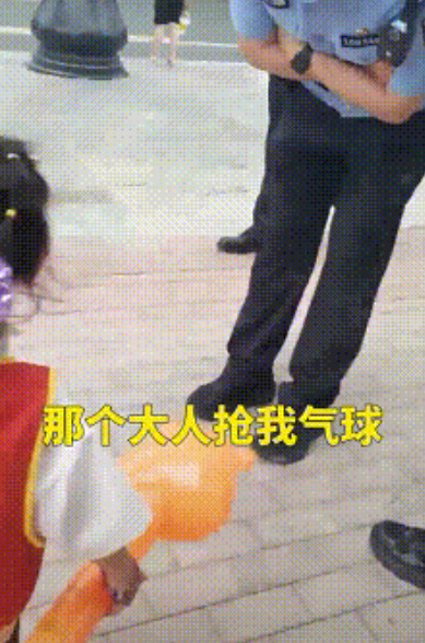 太可爱了!吉林,一小女孩买气球,选好未拿,妈妈付 钱时,被男子买走了,然后向警察告状:那个大人抢我气球。人生中第一次报警,把警察给整不会了。网友:这个案子怎么处理?