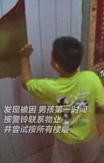 危急时刻,男孩没有丝毫犹豫,迅速按警铃联系物业,并且将所有楼层都按了一遍,希望能够有所帮助。
