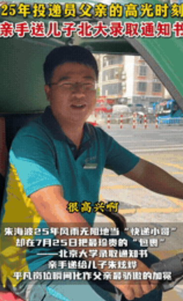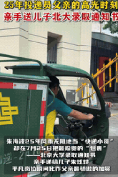 “最幸福的一次投递!”广西柳州,一位邮政快递员拿着北大录取通知书的手直发抖,这不是派送给别人的,正是给他自己家儿子的!这位父亲激动地说:“能给自己的儿子,亲手送上北大的录取通知书,我很高兴也很激动!”谁能想到,这份特殊的快递背后,藏着整整七百多天深夜接送的辛苦!网友:“700多天的辛苦,为了这一刻,真值了!” 据南国早报7月26日报道:7月25日,在广西柳州铁一中学,一个普通的邮政投递员朱海波,完成了他职业生涯中最特别的一次派送。 这一次,收件人是他的儿子朱炫烨,而包裹,是那份无数家庭梦寐以求的北京大学录取通知书。 朱海波干了25年快递,亲手送过数不清的邮件,但这一次,他捏着那个印着北大校徽的信封,手微微发颤,声音也哽咽了。他说,这是这辈子“最幸福的投递”! 这份幸福的背后,是日复一日的平凡付出,为了让儿子能安心学习,从高二开始,朱海波就坚持每天凌晨6点半送儿子上学,深夜11点再接走读的儿子回家。 夏天最热的时候,他那身蓝色的工作服后背总被汗水浸透,湿了干,干了湿,久了甚至能结出一层薄薄的盐霜。 而家里的担子,妻子默默扛起,洗衣做饭,尽量不让孩子分心。 夫妻俩对儿子成绩从不过分苛责,常说的话是“考不好没关系,下次努力就行”,更多时候是倾听孩子诉说压力。 正是在这样没有高压、充满理解的家庭氛围里,热爱政治和历史的朱炫烨,最终稳定发挥,考入了北大国际关系学院。 当父亲亲手将通知书递到他手上时,小伙子也一脸惊喜:“真没想到是我爸亲手送来。” 这个平凡家庭的故事,像一道暖流触动了很多人。 许多网友留言表达感动,说这比任何学区房都珍贵,孩子眼里的光,是父母用肩膀托起来的。 也有人感慨,普通家庭用踏实和爱铺就的路,同样能通往顶尖学府,没有惊天动地,只有风雨无阻的接送和那句朴实的鼓励! 这份录取通知书,最终由最熟悉它意义的人,亲手送达,它不仅仅是一纸入学凭证,更像是一个家庭二十五年默默耕耘、七百多个深夜校门口等待凝结成的果实。 朱海波工作服上的盐霜在阳光下闪着微光,那一刻人们明白,世间有些最珍贵的“邮件”,地址栏早已写满爱与坚持,而它的抵达,从来都是双向奔赴的结果。 这封通知书的分量,每一位用心付出的父母都懂,它的意义,远在未名湖畔的课堂之上,深深烙印在这个普通劳动者家庭滚烫的署名里。 对此,您怎么看?您家孩子通知书在送达时有没有什么小惊喜?在评论区聊聊。