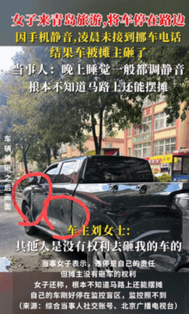 “太过分了!”山东青岛,女子开车来旅游,大晚上的因为找不到停车位,看着路边有位置,就干脆停在了路边。没想到,这块地竟是摊主天不亮就要支摊的地方!当摊主凌晨推车过来,看见车堵了他的生意,急得连打一堆电话。岂料女子的手机静音害惨了她,电话一个没接通。更让人瞪眼的是,摊主抡起家伙就把车砸得坑坑洼洼!一觉醒来,刘女士看着爱车傻了眼:“乱停车我认罚,可谁给他权力砸车?” 据潇湘晨报·晨视频7月26日报道:外地游客刘女士在青岛碰上了一件窝火事,那天晚上她开车转悠到半夜,死活找不着停车位,实在没招了就把车撂在路边空地上。 她压根不知道,这块地儿天不亮就有摊主摆摊卖东西,睡前她把手机调成静音,哪想到这一调调出了大麻烦。 天蒙蒙亮,摊主推着小车来出摊,一看车位被堵得严严实实,急得直跺脚,连着打了十几个挪车电话,手机那头始终没动静。 眼瞅着早市要开张,自己的饭碗被生生给挡了,火气一上头,抡起手边的家伙就往车上砸。 等刘女士睡醒过来,看见新车被砸得坑坑洼洼,心都揪成一团,气愤地说:"乱停车我认罚!可谁给他权力砸车?" 随后她赶紧报了警,民警来得挺快,偏偏这地段是监控死角,找不着证据! 这事传到网上瞬间炸了锅,有人替摊主憋屈:"人家靠这个吃饭呢!车堵着摊子,电话打爆都不接,搁谁不上火?" 还有人怒斥:"再大的火也不能砸车啊!有理变没理,这下摊主倒要吃官司了!" 细琢磨这事,两边都有不对的地方,游客光顾着自己方便,挡了人家活路,摊主气头上砸车,一脚踩进法律坑里。 这件事情告诉我们:撒气解不了疙瘩,拳头砸在别人车上,最后疼的还是自己手心! 眼下民警还在查线索,刘女士的车进了修理厂。您要是遇上挡道的车会咋办?碰见没车位的情况该停哪?大伙儿都来唠两句。