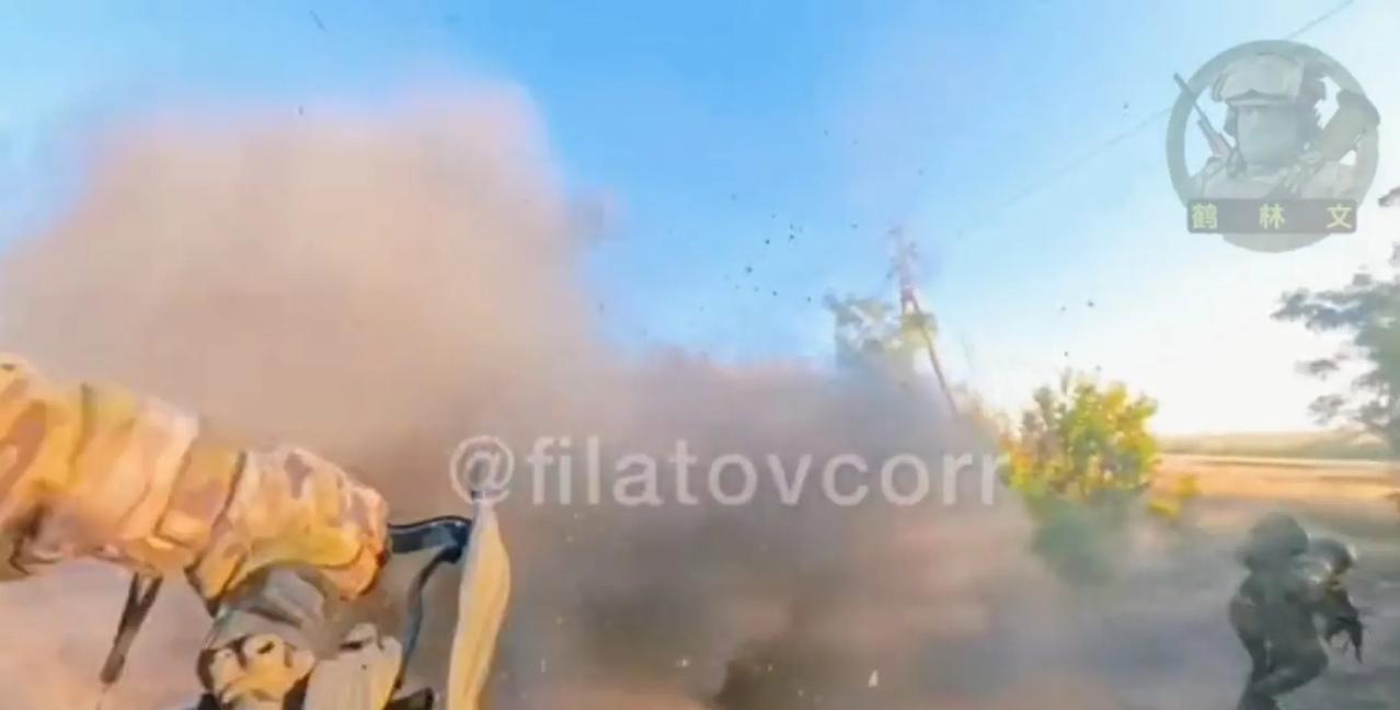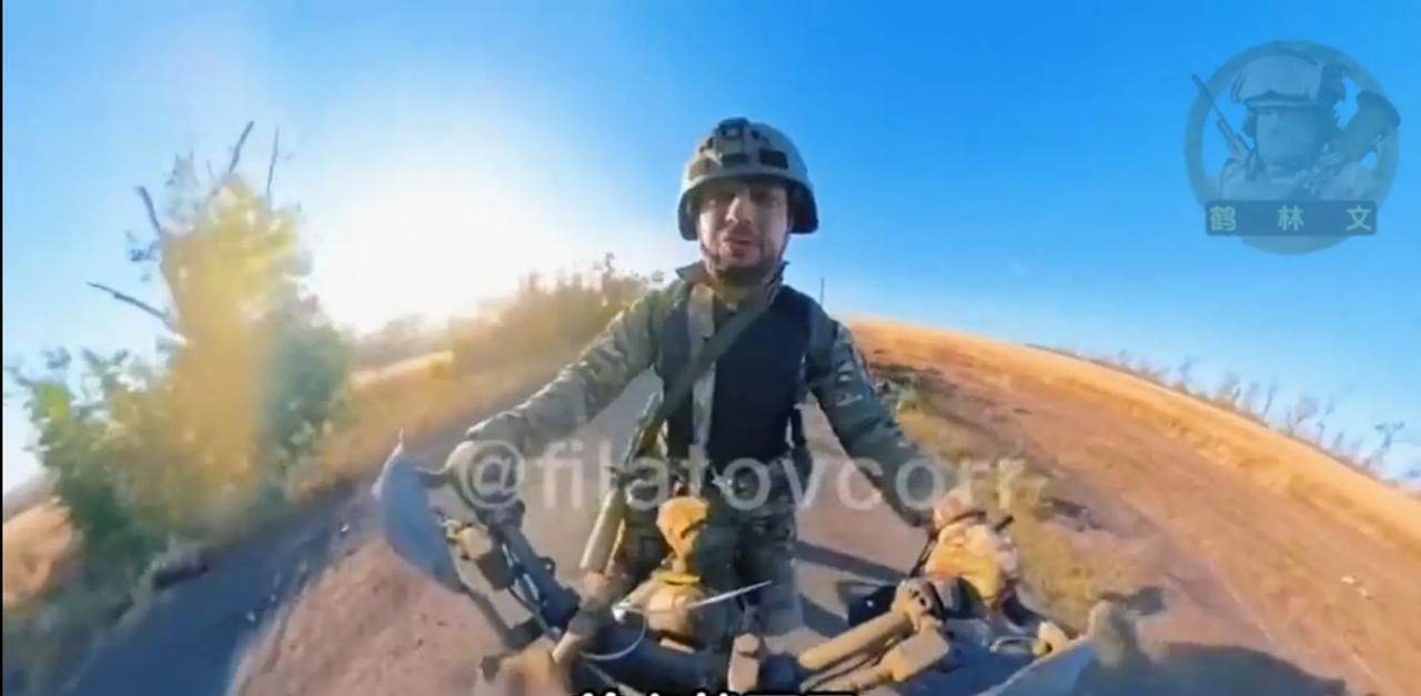 俄罗斯RT电视台战地记者安德烈.菲拉托随俄军进入红军城,他没有乘座设有电子战系统的采访车,而是驾驶一辆两轮摩托在红军城郊外狂飙,他一心只想追上那辆采访车,眼看就要追上了,突然前面树丛林出现一名俄军向他大声喊:“它来了,快走开……”,安德烈.菲拉托反应很快头往右边一偏,一架乌军无人机与他攃肩而过炸向前面10多米远的地上,安德烈.菲拉托停下摩托车与俄军战士交流:“躲得很好,我差点就死了…”