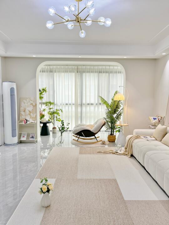 我们家是奶油简约的风格,采光很好,我很喜欢周末坐在客厅放松的时光,再打开电视煲一下午的剧。