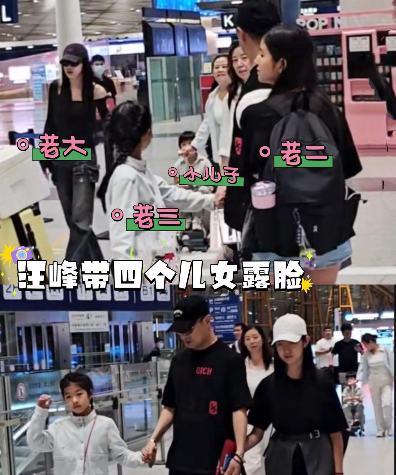 网友机场偶遇汪峰,汪峰牵着三女儿醒醒跟二女儿汪璟怡,大女儿小苹果走在身后,小儿子